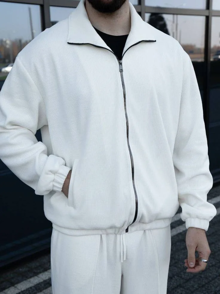 بدلة رياضية بتصميم بسيط وأنيق، تجمع بين الراحة والموضة